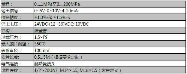 SDG-615/615T柔性管变送输出压力表采用膜片隔离、压力现场指针指示,德国原装机芯,表盘可正反安装,表壳任意360度调整可视角度。仪表内配置高精度压力、温度传感器模拟量输出。其中PT124Y-615T加垫电偶,可实现压力温度同点测量。